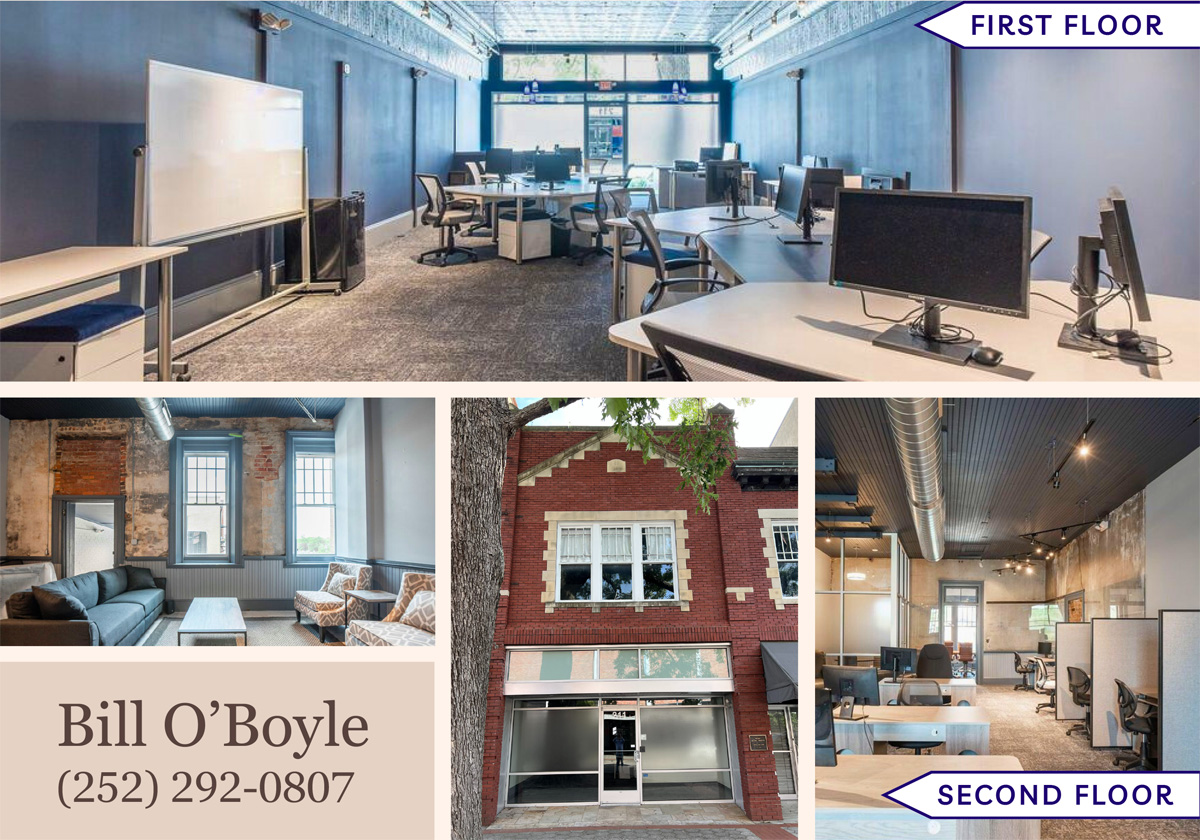 Status: For Sale or LeasePrice: $6,300/month Lease or $650,000 SaleSize: 3284 sq. ft.Contact: Bill O’Boyle 252.292.0807